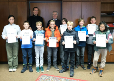 Als Lohn für die Anstregung wurden den Teilnehmern der 2. Runde nun Anfang Dezember von Herrn Dr. Freytag die Urkunden mit den Ergebnissen feierlich verliehen. Zwei Teilnehmer haben dabei so erfolgreich abgeschnitten, dass sie sich Hoffnung machen dürfen, für die 3. Runde an die Universität Regensburg eingeladen zu werden. Wir drücken ganz fest den Daumen!