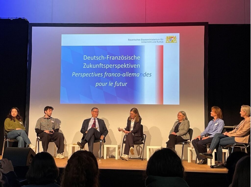 Durch das Programm führten Astrid Barbeau, die Leiterin des Referats Moderne Fremdsprachen am Kultusministerium, und Carsten Böckl, der Ministerialbeauftragte der Oberpfalz und bayerische AbiBac-Beauftragte. Den Auftakt bildeten Grußworte von Anna Stolz, der Staatsministerin für Unterricht und Kultus, Dr. Wolfgang Mutter, dem Abteilungsleiter Gymnasien am Ministerium und Alexandre Vulic, dem französischen Generalkonsul in München. Unter Beteiligung von AbiBac-Schülerinnen und Schülern fand am Vormittag eine spannende Podiumsdiskussion statt, die durch interaktive Elemente und zahlreiche Videos bereichert wurde. Das Thema waren deutsch-französische Zukunftsperspektiven für AbiBac-Absolventen. So wurde etwa ausgeführt, dass von ca. 800 in Deutschland aktiven französischen Unternehmen über die Hälfte in Bayern ansässig sind, was vielversprechende Berufsaussichten für unsere zukünftigen Absolventen verspricht. Durch die Podiumsdiskussion leitete die bekannte Journalistin und ARD-Korrespondentin Barbara Kostolnik, die Gesprächsteilnehmer und Publikum in einen interessanten Austausch verwickelte.