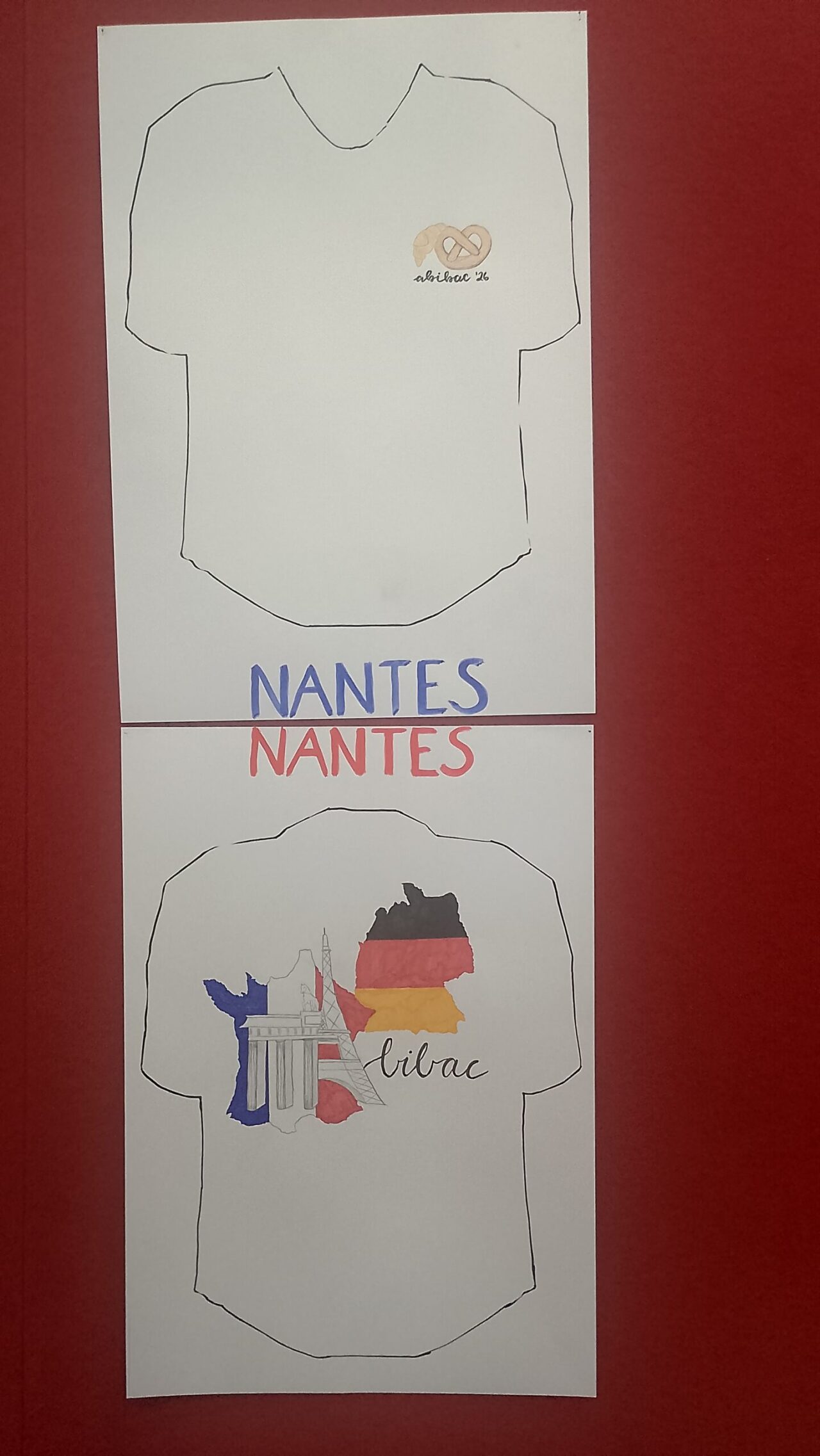 Nach einer erholsamen Mittagspause lernten sich die Schülerinnen und Schüler der AbiBac-Schulen mittels eins Gruppenprojekts genauer kennen. Dieses bestand darin, kreative T-Shirts mit deutsch-französischen Motiven zu designen. Zum Schluss durften die Teilnehmenden über das Sieger-T-Shirt abstimmen, das alle Abibacheliers 2026 erhalten werden.